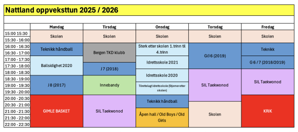 Treningstider: https://docs.google.com/spreadsheets/d/1na3EQfHncP8SRcm3IUtYg5AEMlR9cQvIc15HdPZXa-k/edit?gid=0#gid=0